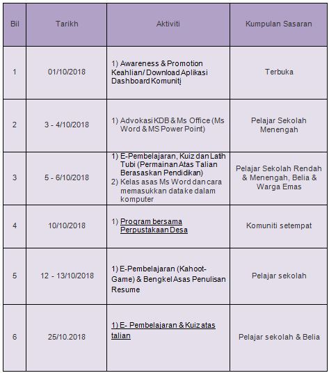Aktiviti Bulan Oktober 2018
